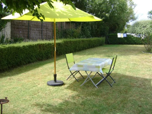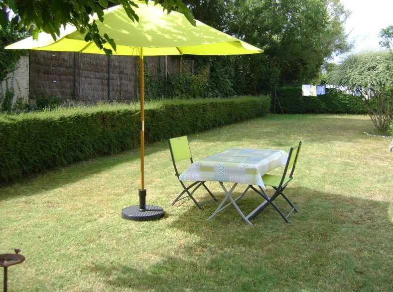 Vue sur le jardin situé à l’arrière de la maison et possibilité d’y installer un parasol et une petite table pour vos repas.