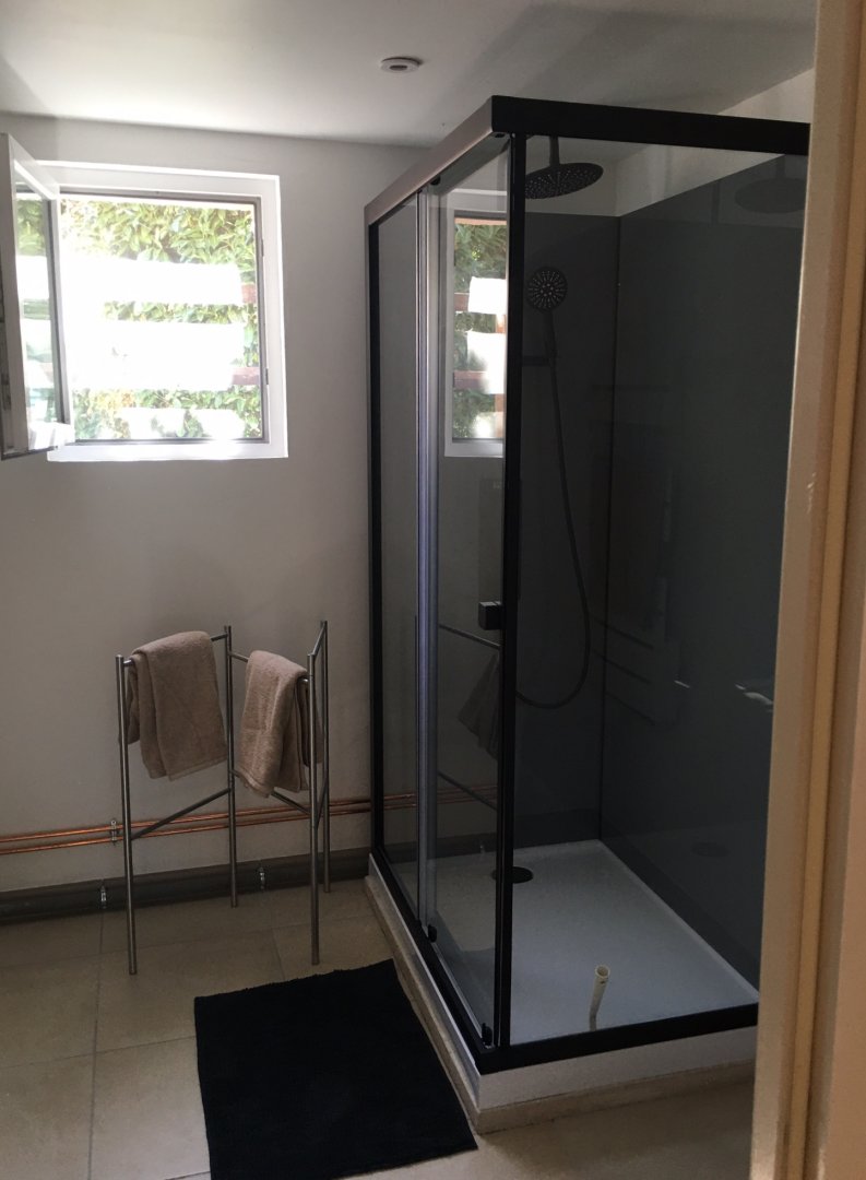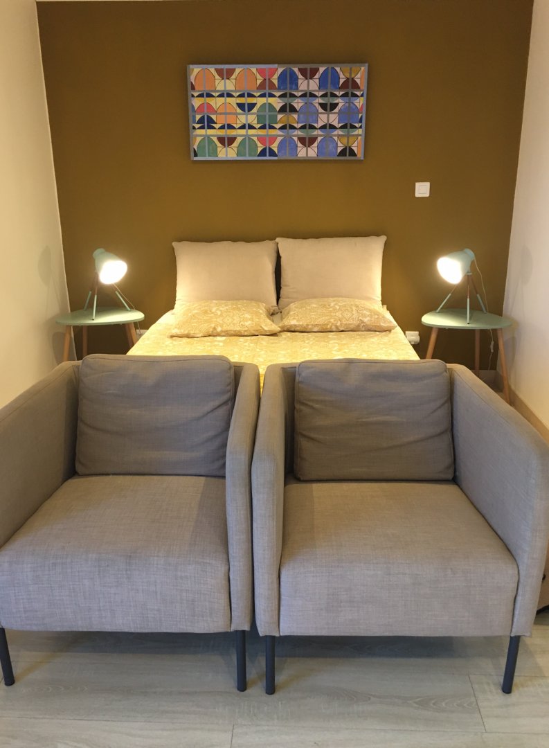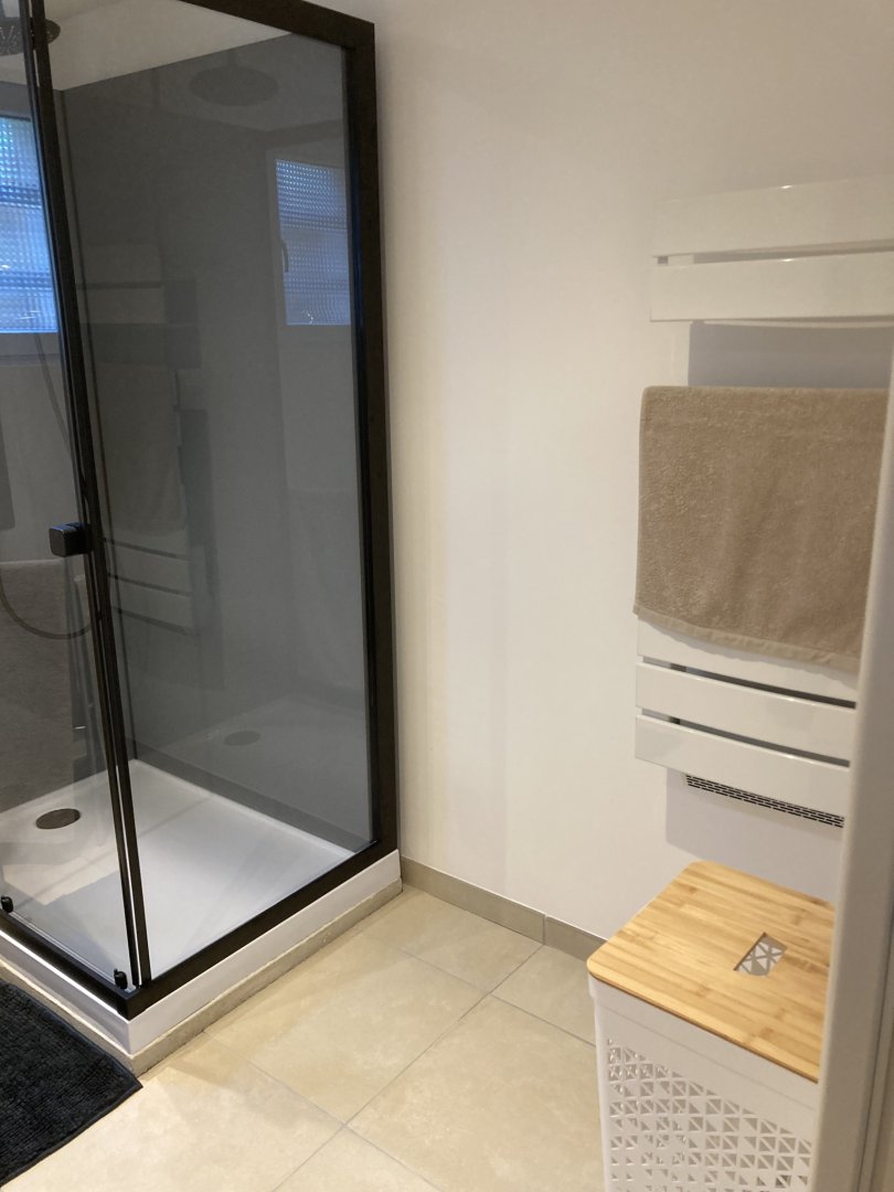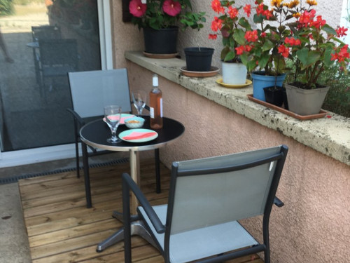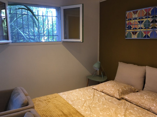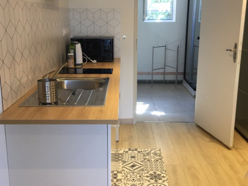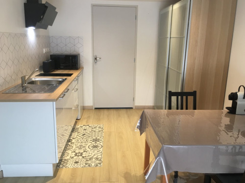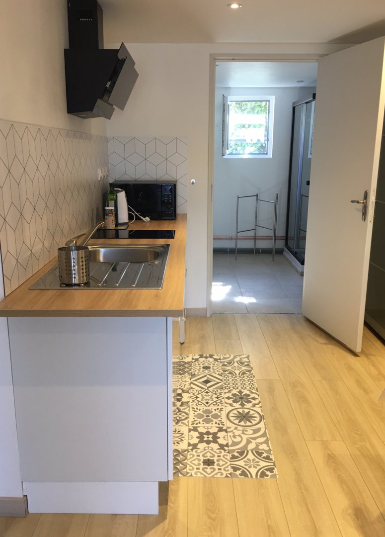 Studio neuf de 30 m², pour 2 personnes, tout équipé, au calme, niché au creux d'un jardin fleuri, dans une propriété close avec parking, petite terrasse, piscine et avec un accès très bien desservi.