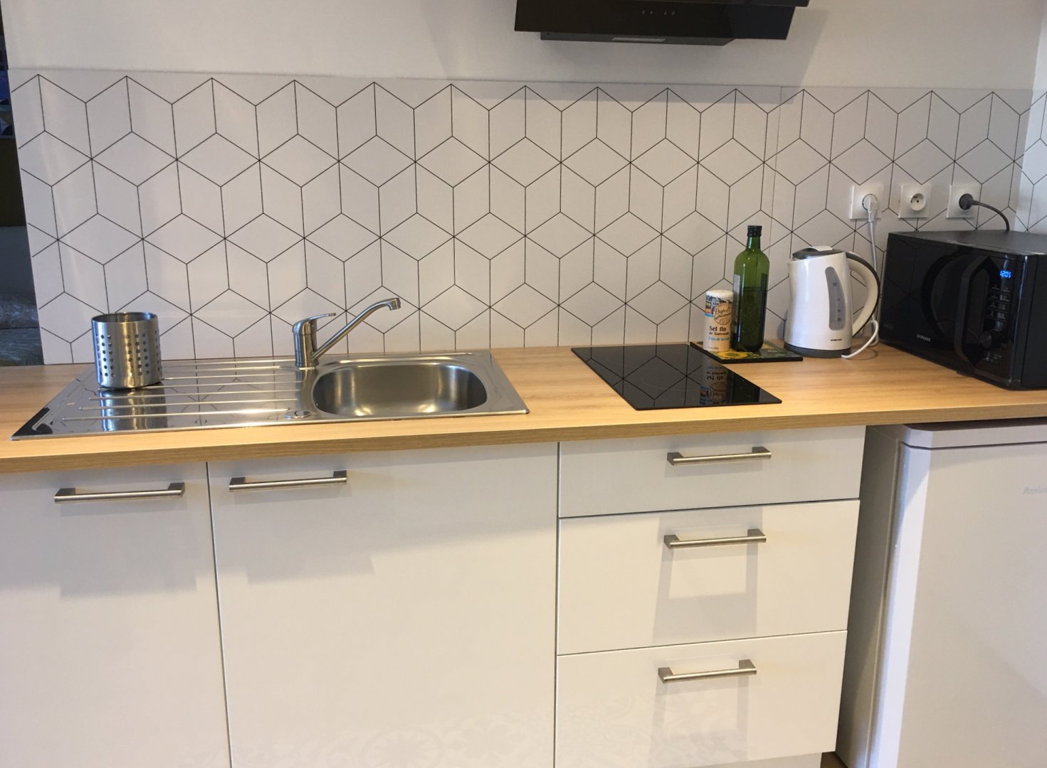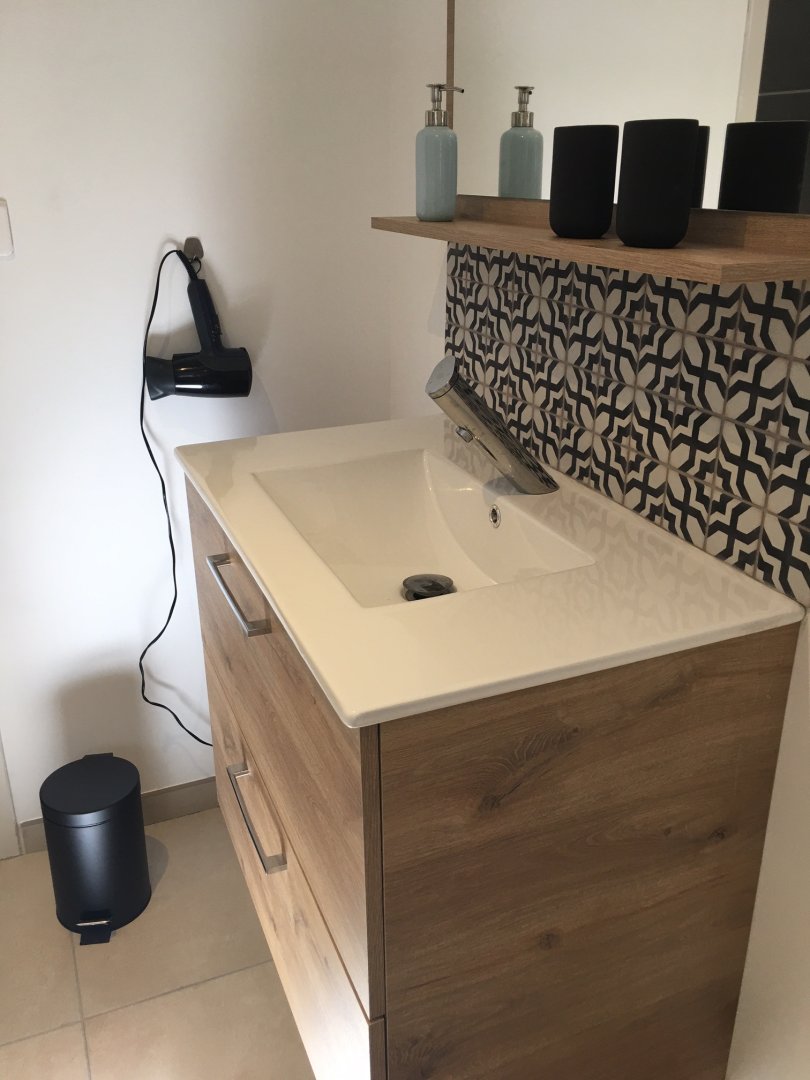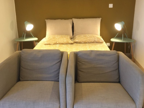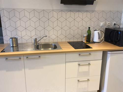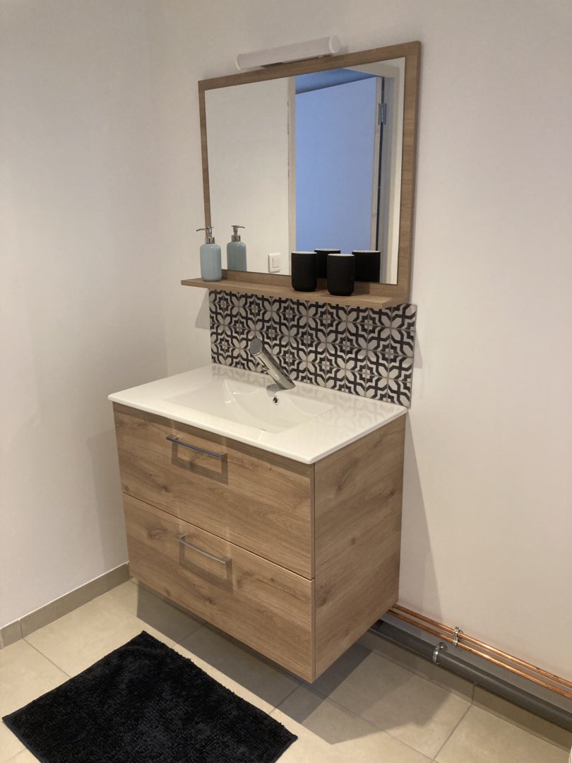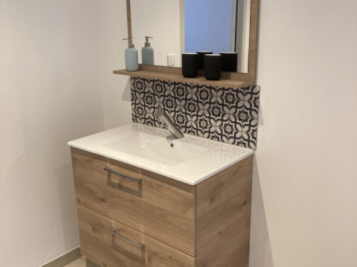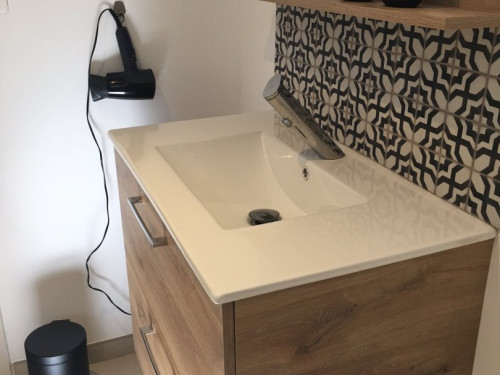 Studio neuf de 30 m², pour 2 personnes, tout équipé, au calme, niché au creux d'un jardin fleuri, dans une propriété close avec parking, petite terrasse, piscine et avec un accès très bien desservi.