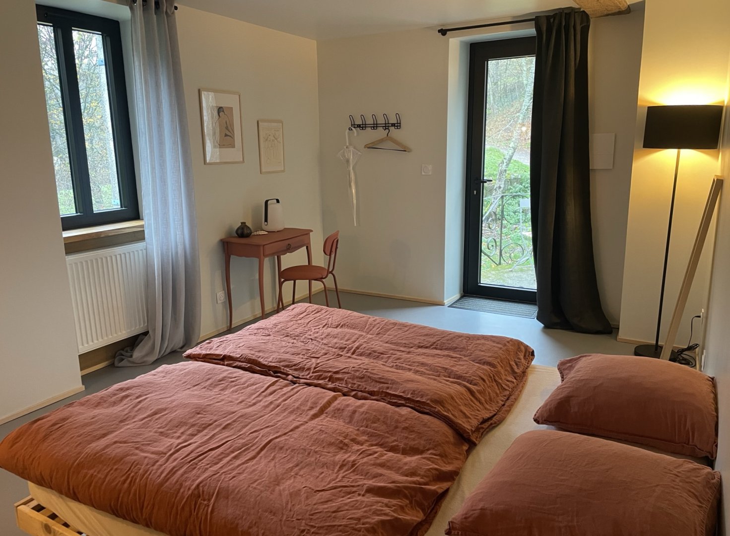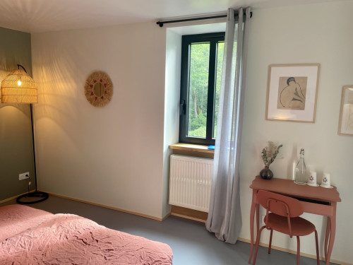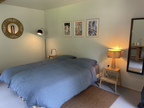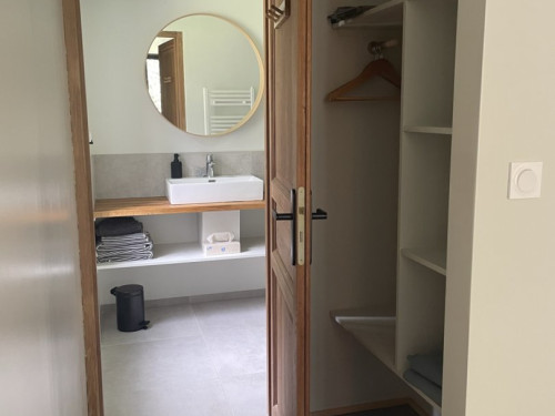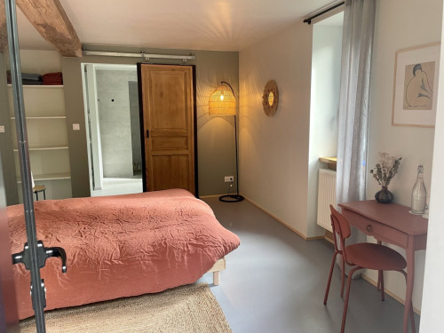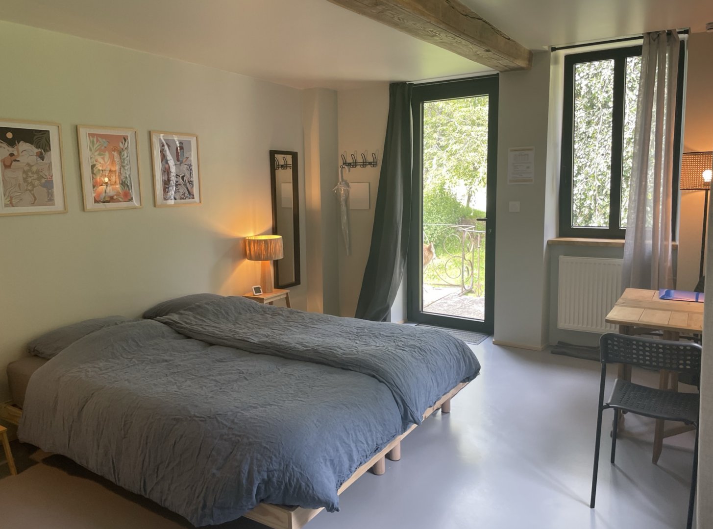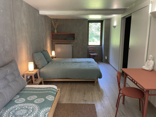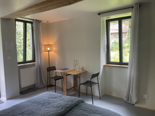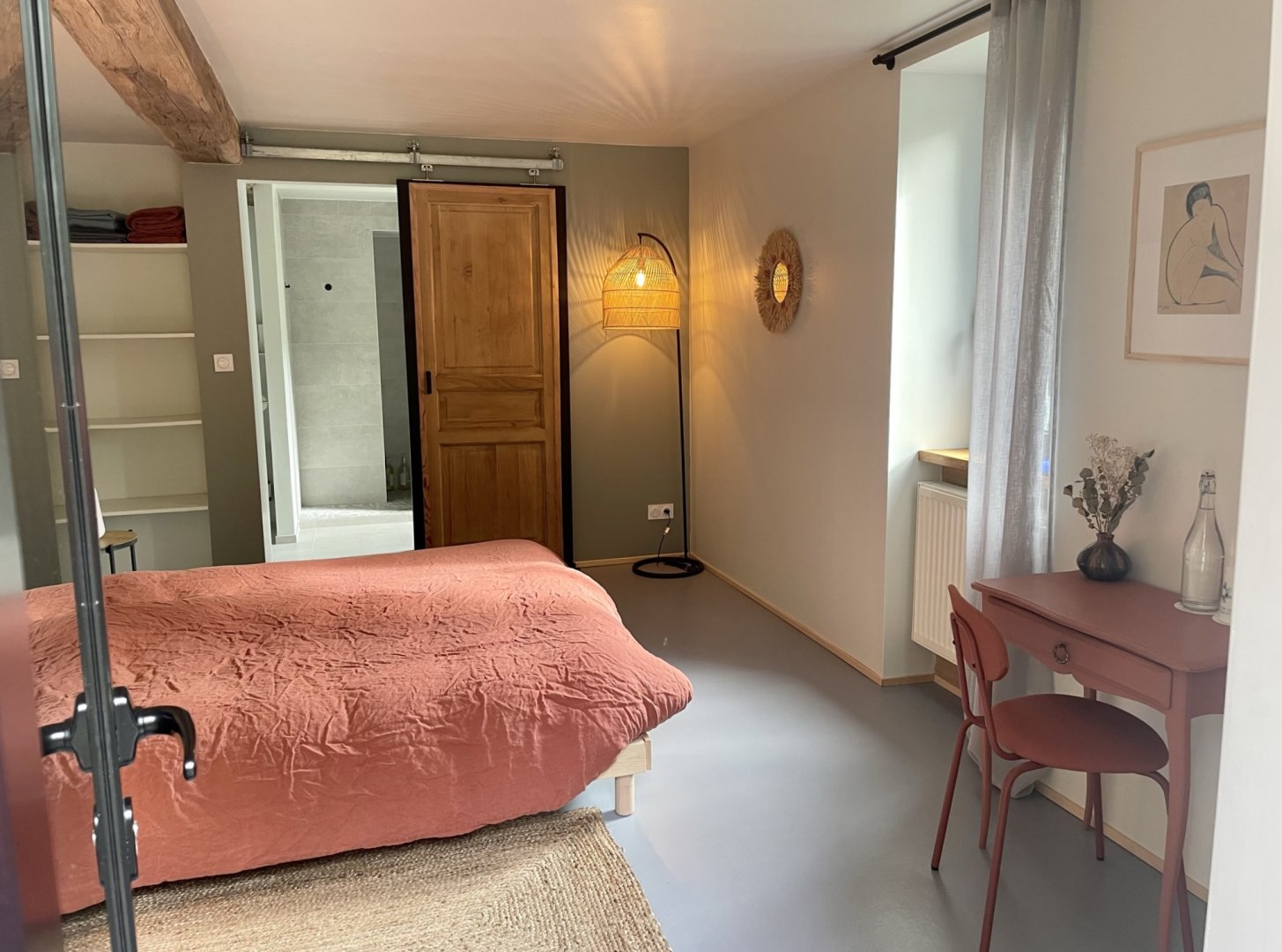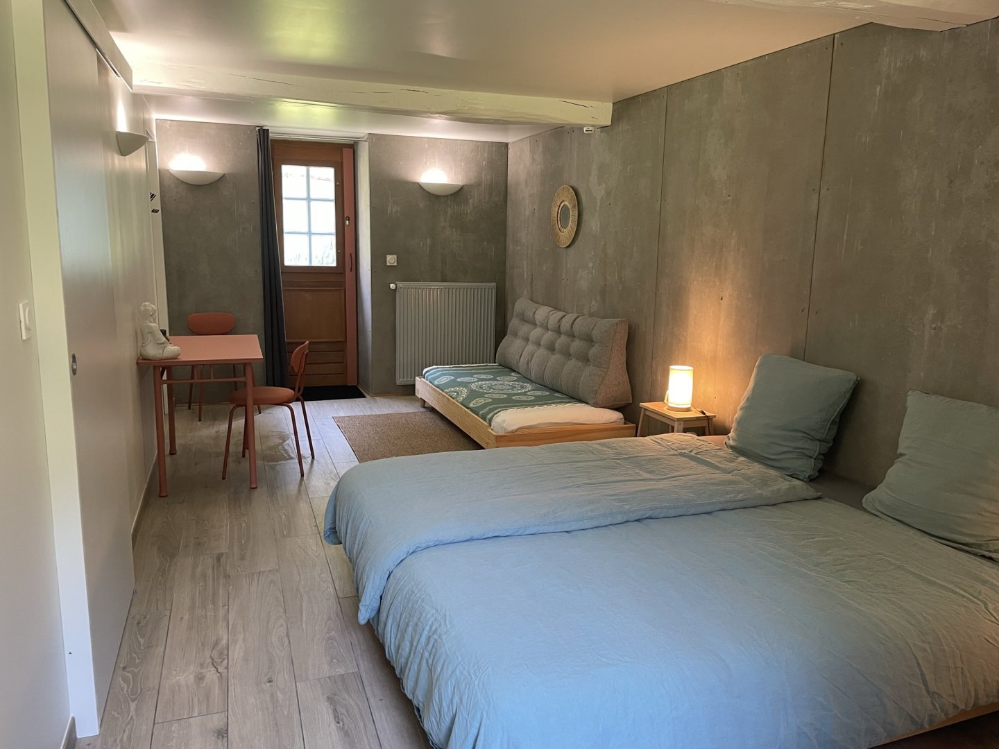 La partie de la maison en location est constituée d'une pièce de vie et de 3 chambres avec entrées indépendantes sur l'extérieur et non communicantes. Seule la chambre du rez-de-chaussée communique avec la pièce de vie.