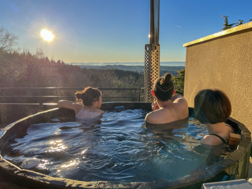 Un accès au bain nordique est également possible : UNIQUEMENT SUR RÉSERVATION au moins 72h avant l’accès souhaité et moyennant un surplus de 40 € (accès privatif d'une heure, peignoirs compris).