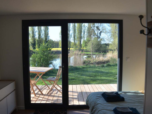 Venez vous ressourcer dans notre lodge, tout équipé, situé au bord d'un étang, aux portes du château de Chambord et de la Loire à vélo.