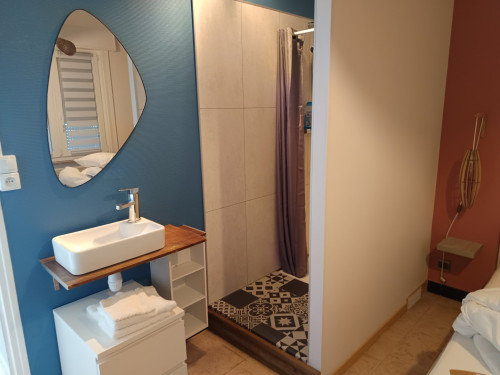 Possibilité d'une deuxième chambre avec un lit pliant au besoin et toilettes attenants.