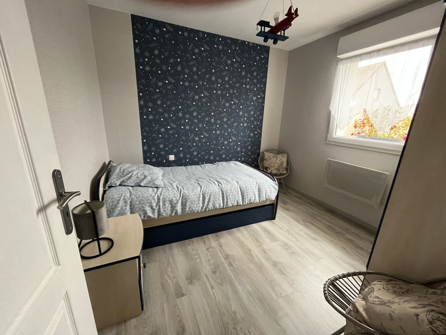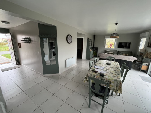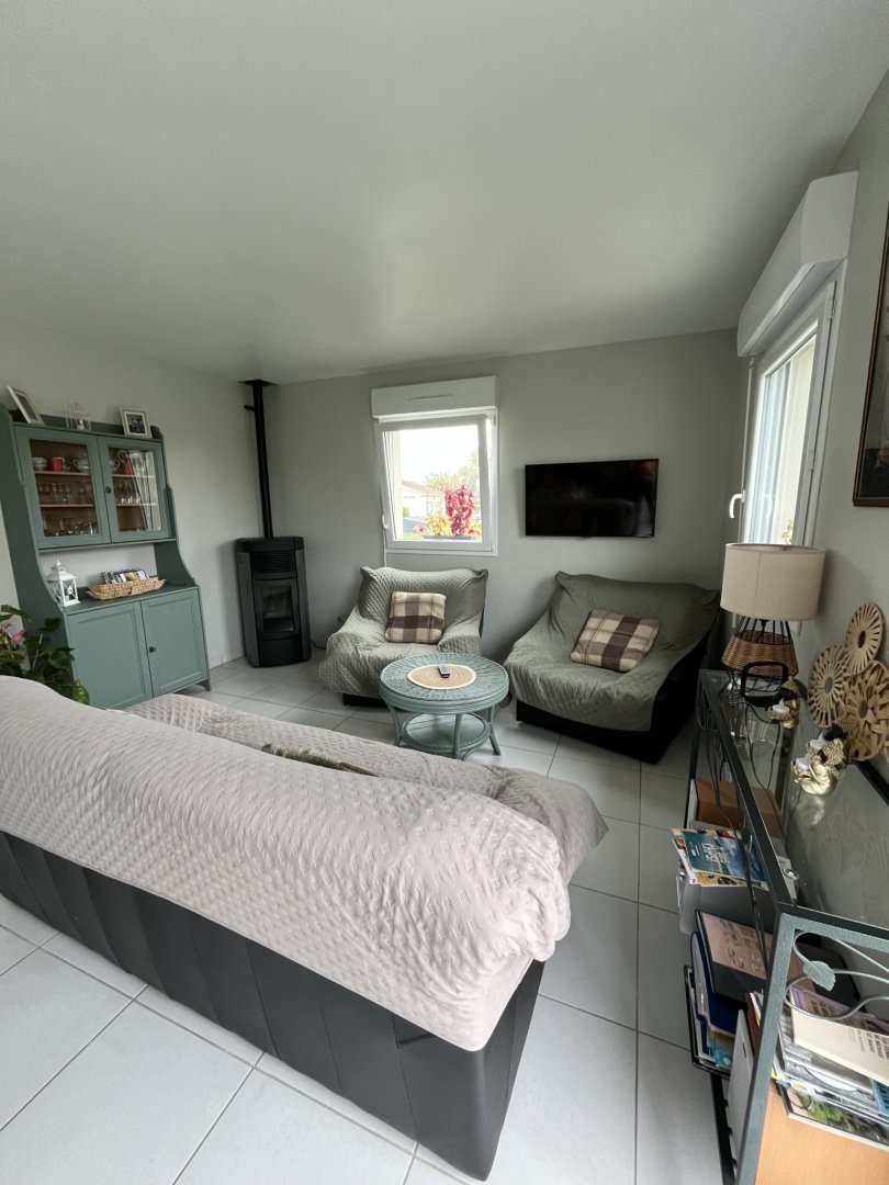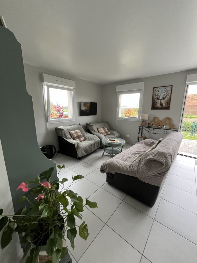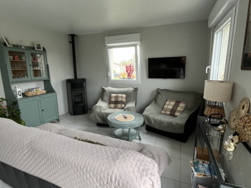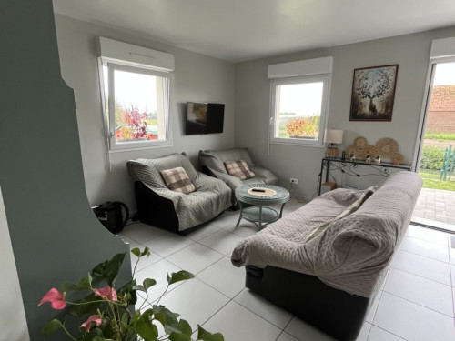 New detached house with entrance hall, open-plan kitchen, fully equipped with gas stove, electric oven, microwave, dishwasher, coffeemaker, kettle, toaster, pressure cooker, steam cooker, waffle maker, ... opening onto a living room with wood-burning stove, a bathroom with walk-in shower, washbasin and WC; a storeroom with MAL, an independent WC; a bedroom with 1 double bed (160 cm); 1 bedroom with 2 single beds (2 x 90 cm), and a children's bedroom with 1 single bed (90 cm), a cot and all baby equipment.