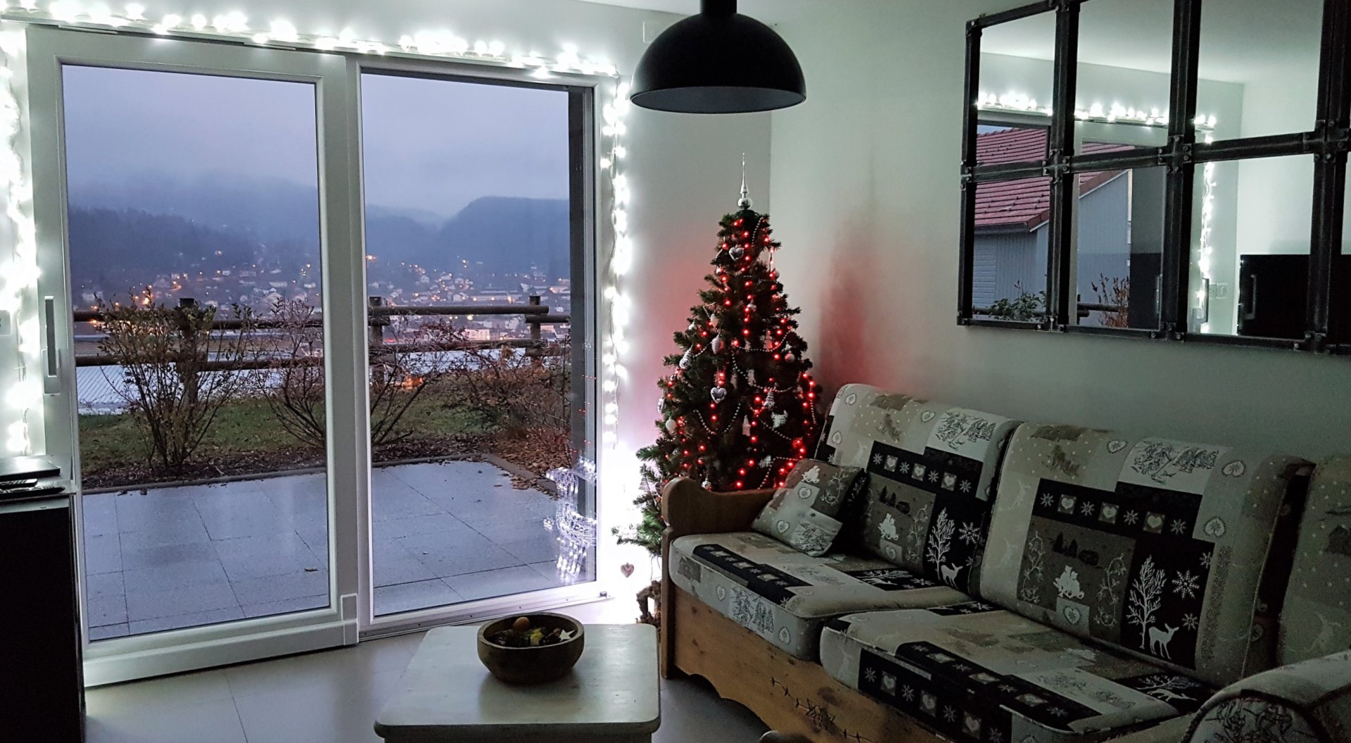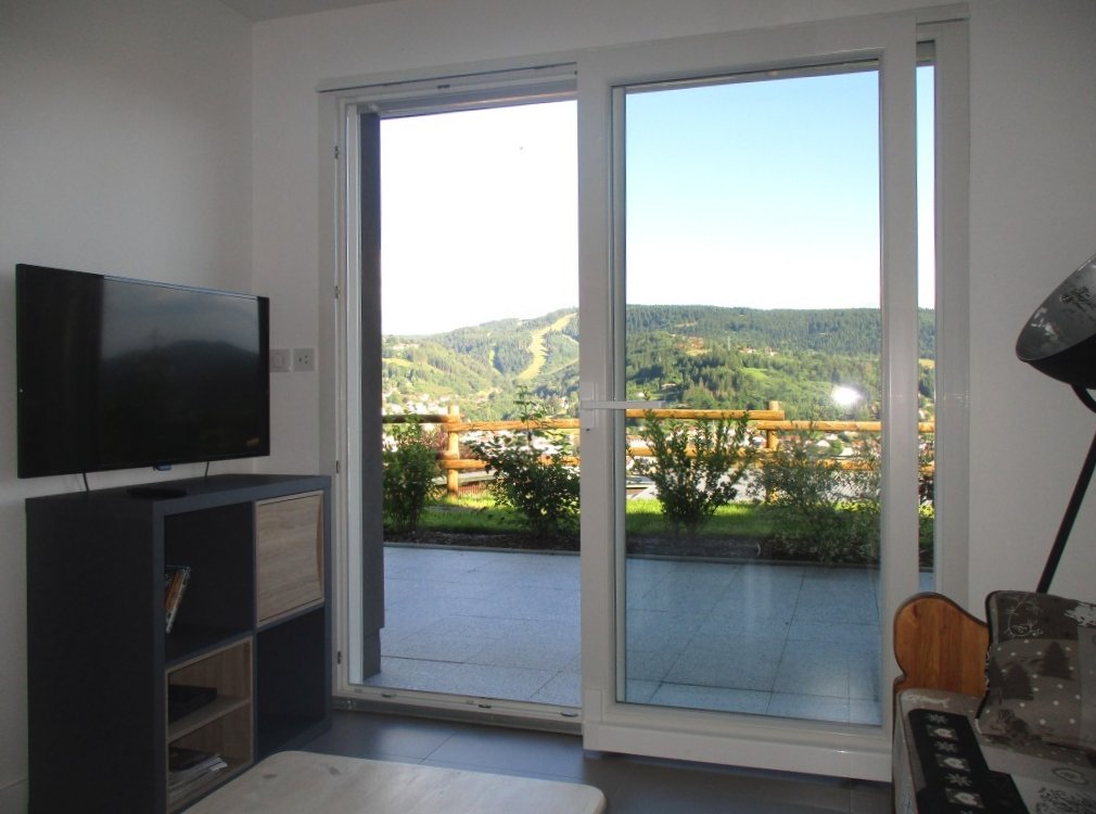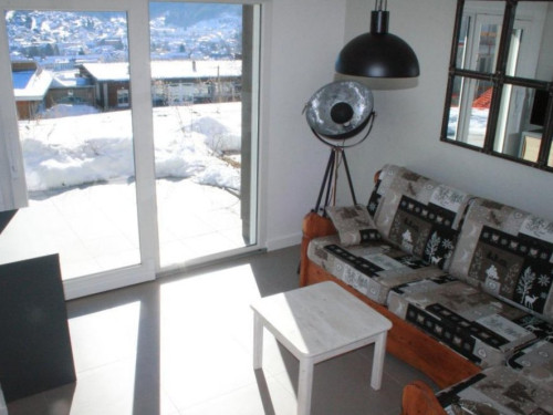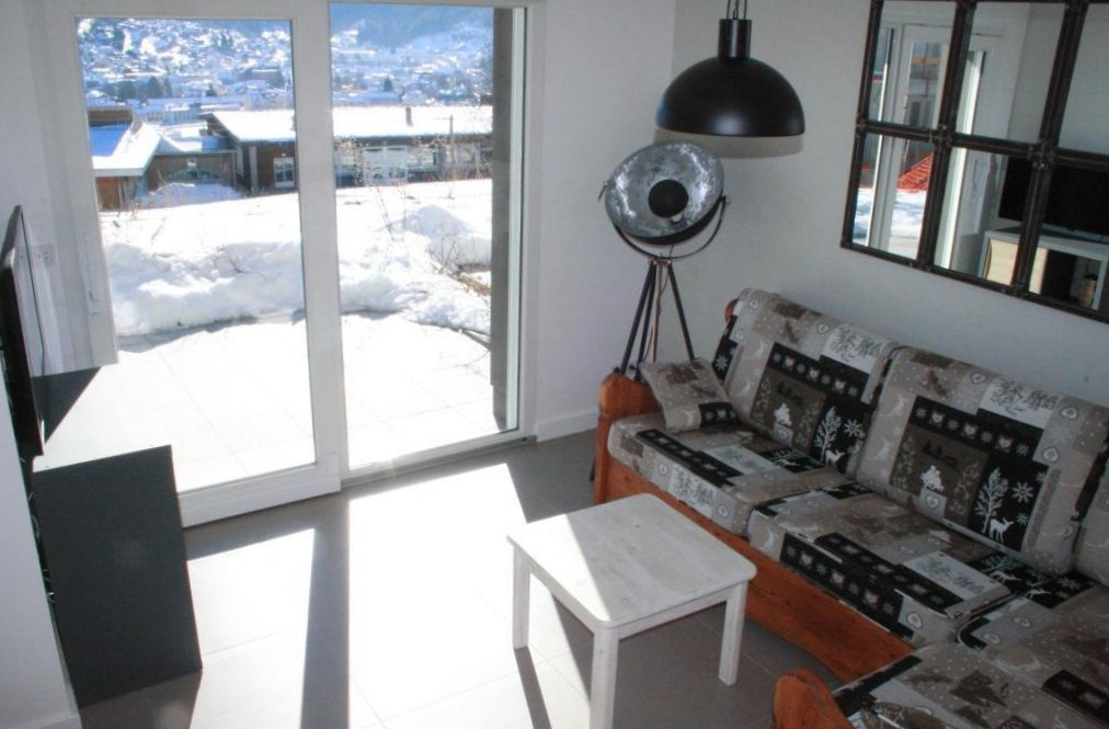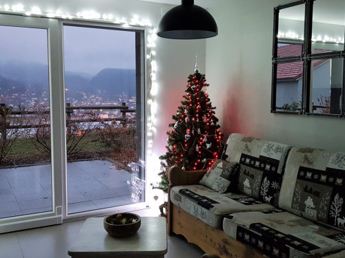 Depuis la grande terrasse plein sud et le jardin privatif, profitez d’une vue exceptionnelle sur la ville et les pistes de La Mauselaine, où l’on aperçoit les skieurs dévalant les pistes.