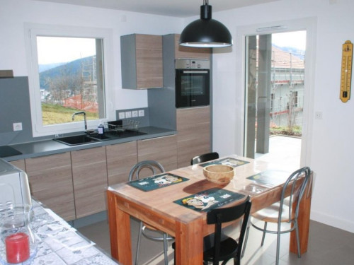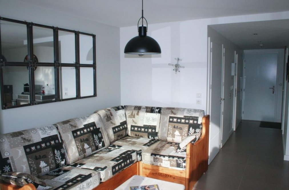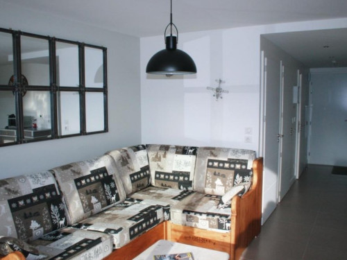 La pièce à vivre lumineuse (22 m²) comprend une cuisine moderne entièrement équipée (plaque induction, four, micro-ondes, lave-vaisselle, cafetières filtre et Senseo, service à raclette, etc.) et un salon-séjour avec canapé d’angle convertible, TV, lecteur DVD, bibliothèque et jeux de société pour petits et grands.