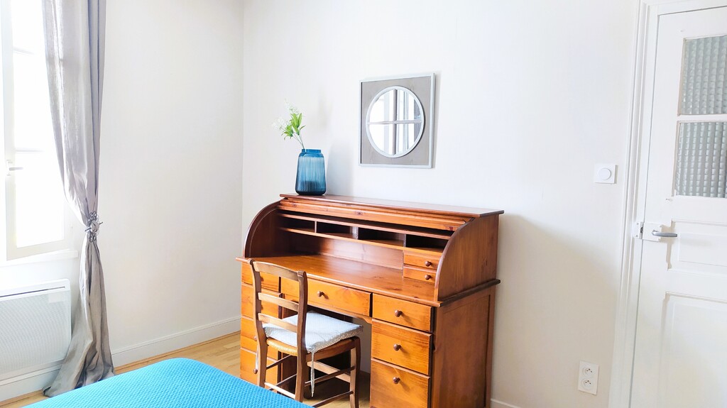 - à l'étage : 1 chambre (2 lits simples, 12 m²), 1 chambre (1 lit double, 14 m²), 1 salle de bains et 1 WC séparé.