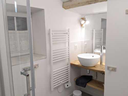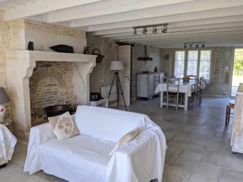 Rez-de-chaussée: Entrée, cuisine récente, salon-séjour pierres apparentes avec grande baie vitrée, poêle à bois. Salle d'eau avec douche à l'italienne, WC indépendants, chambre 1 familiale /1 lit 140 avec salle d'eau/WC attenante, buanderie avec lave-linge.