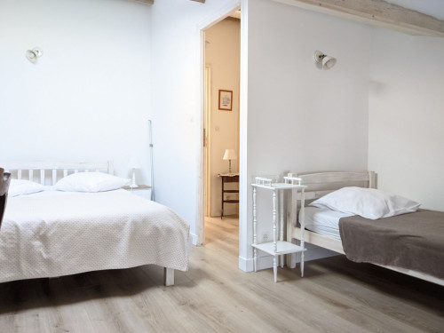 A l'étage: chambre 2 (lit 140, 1 lit 90), salle d'eau/WC, chambre 3 en mezzanine avec porte (lit 160), dégagement avec placards. Ch 4 (3 lits 90), Chambre 5 (1 lit 160-2 lits 90)