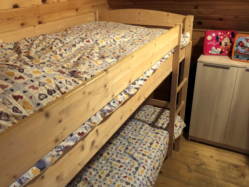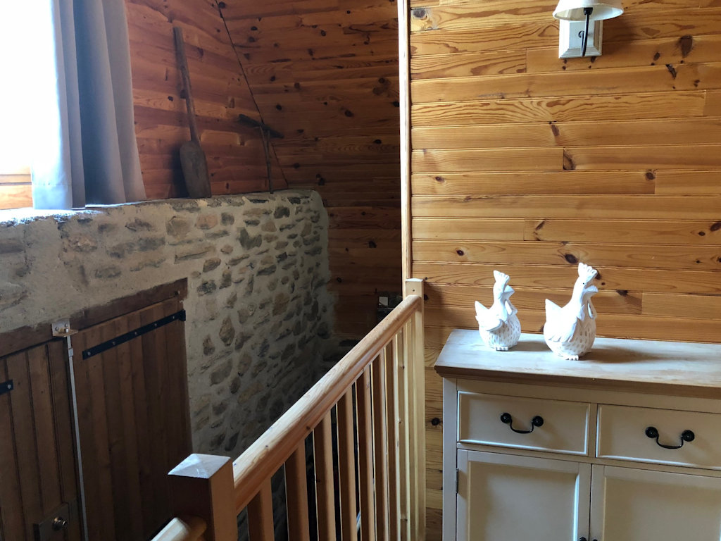 À l'étage : 1 chambre couchage en 160x200 / 2 chambres couchages en 140x190 / 1 petite chambre/cabine avec 2 lits superposés en 90x190 - salle d'eau composée d'une cabine de douche, lavabo et WC, sèche cheveux. Un 2me WC est au rez-de-chaussée.