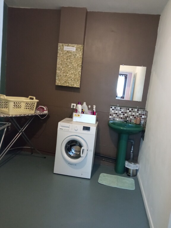 La lingerie est équipée d'un séchoir, table et fer à repasser, lavabo et lave linge.