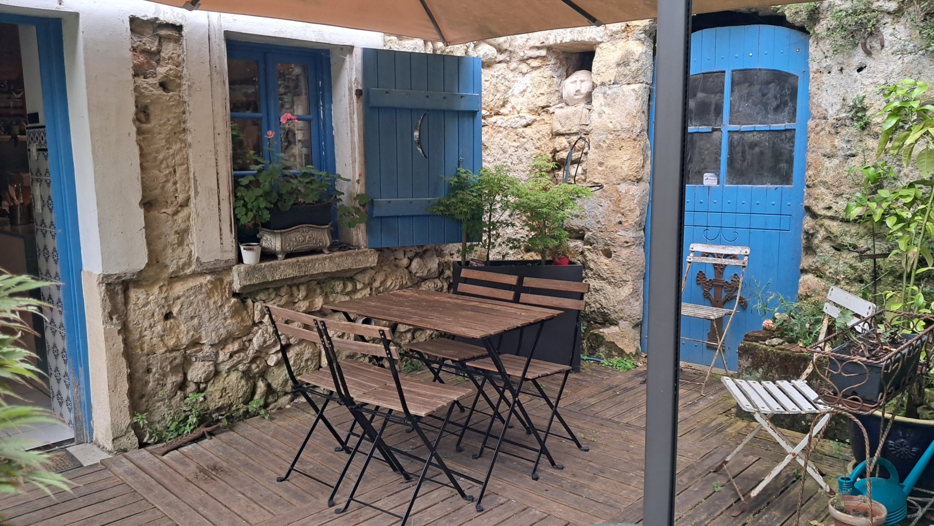 Dans un petit pavillon attenant avec entrée indépendante mais aussi accès par la partie troglodytique, possibilité d'une chambre avec lit de 90, donnant sur la terrasse ombragée et le chemin d'accès au jardin haut.