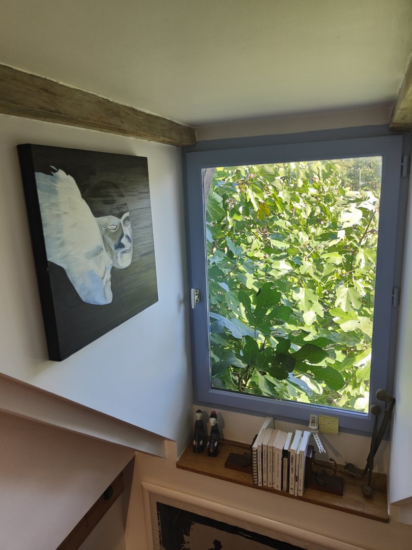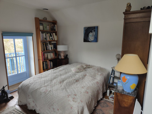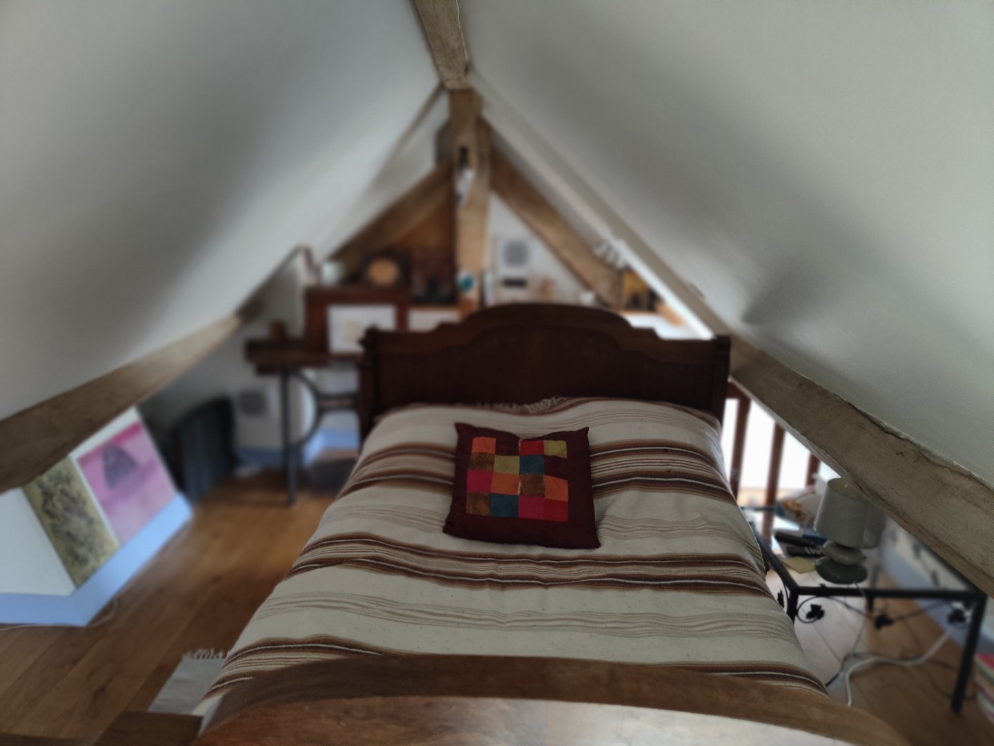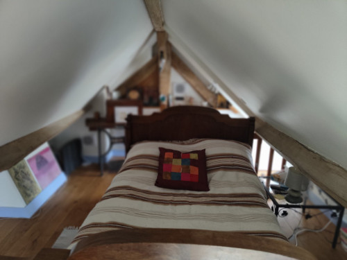 Au second niveau, une chambres avec lit de 120 en mezzanine, donnant sur le jardin haut.