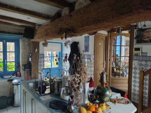 Restauration soignée des intérieurs (four à pain, cuisine encore en cours), extérieurs pour partie actuellement. Cheminée intérieure ouverte, cuisinière bois.