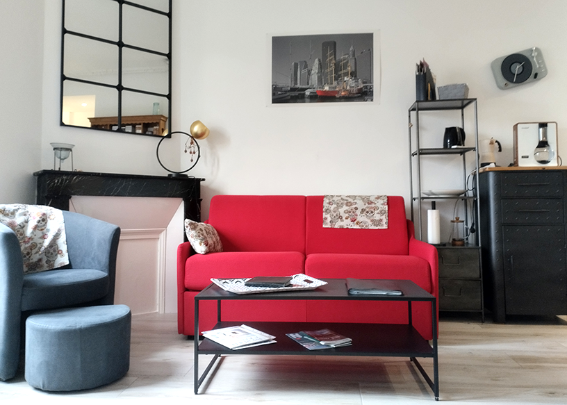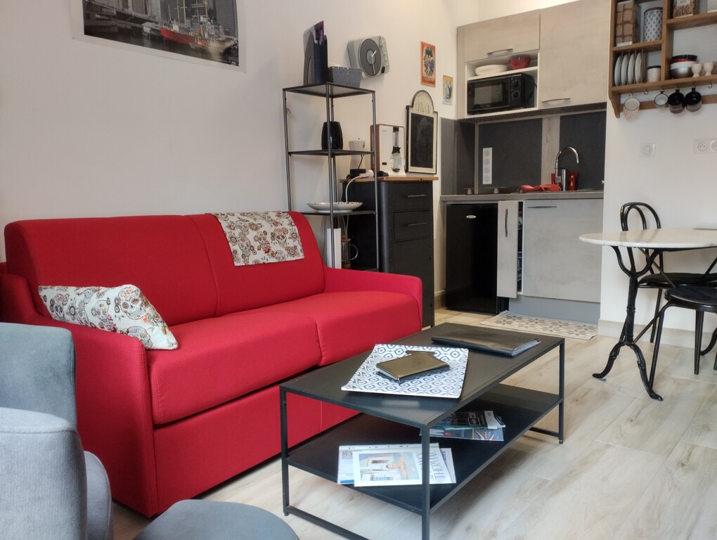 –salon confortable & sympathique + cuisine équipée.