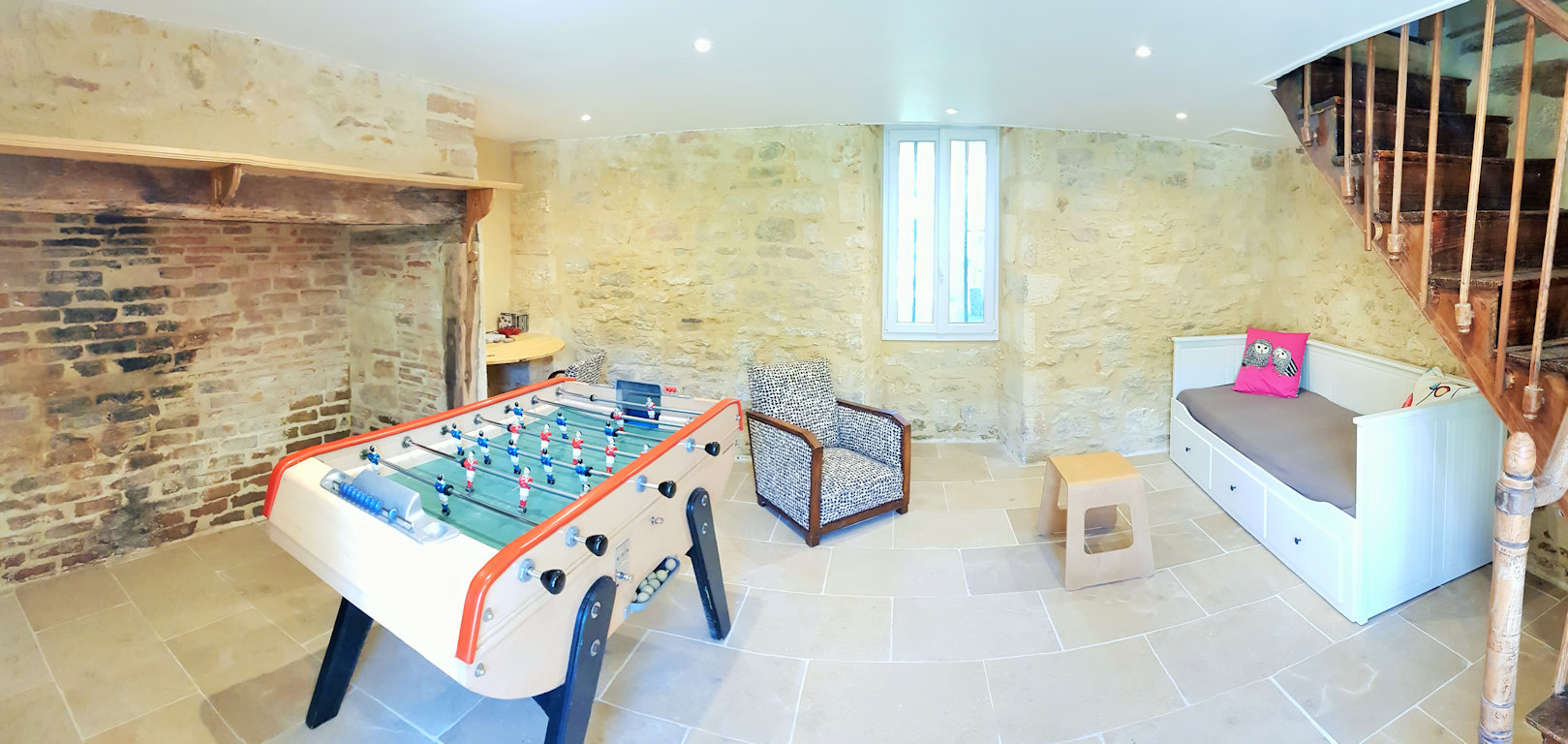 En rez-de-jardin, vous trouverez une salle de jeux qui fait office de chambre si besoin (lit gigogne 2 couchages) et accessible par l'intérieur comme par l'extérieur.