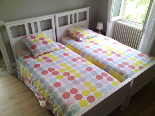 Un couloir dessert 2 chambres, l'une avec 1 lit 140 et l'autre avec 2 lits 80x200. Salle de bains avec douche, lavabo, rangements, wc séparé.