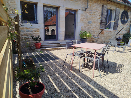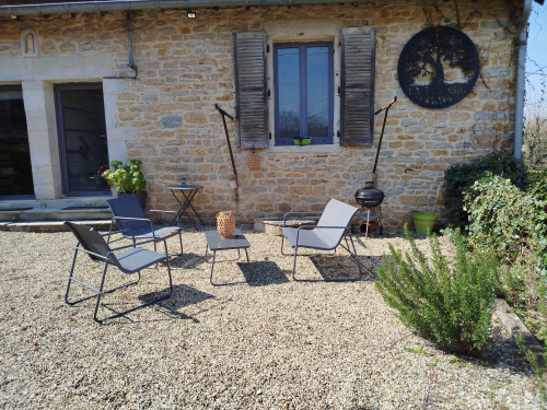 La cour extérieure est aménagée avec un salon de jardin, des fauteuils, un barbecue. Vous avez également à disposition des plantes aromatiques pour assaisonner vos plats.
