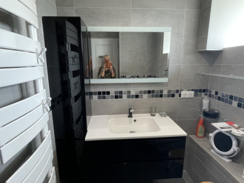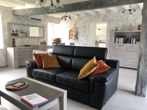 Séjour avec grand écran smartTV, Wi-Fi (fibre), canapé convertible en cuir (140x200).