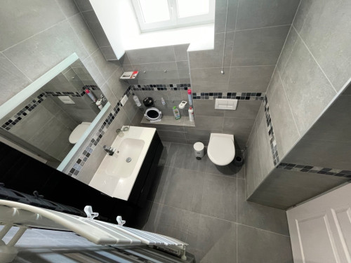 Chambre avec lit queen-size (160 cm) et salle d’eau attenante (douche à l’italienne & WC).