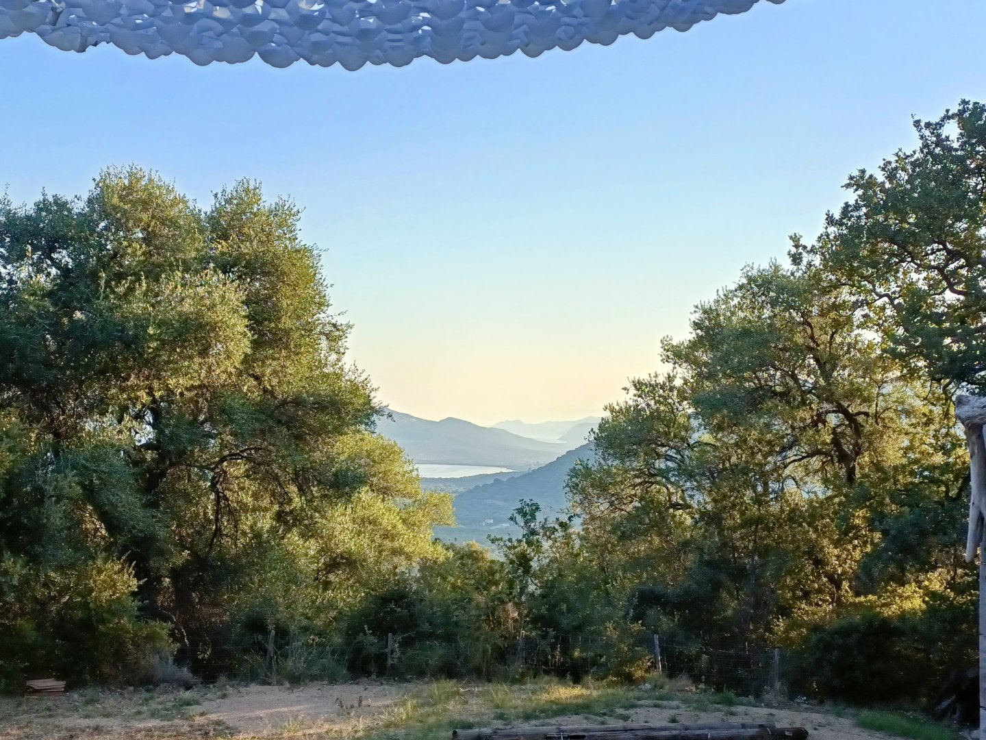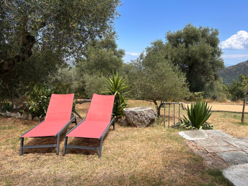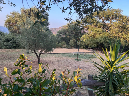 Le lieu est au calme, situé hors village dans la partie basse lieu-dit Murato, au milieu d'oliviers et chênes verts, terrain clos et portail électrique.