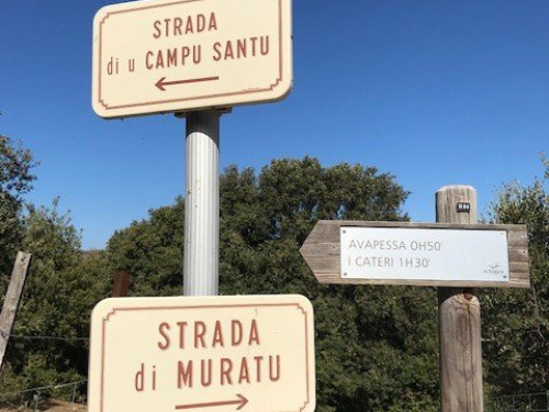 Accès D71, descendre "Hameau Murato" puis au croisement continuer tout droit direction "Strada di San Ghjacumu" ou "Strada di u campu santu", premier chemin à droite boite aux lettres n°2 logo Cybevasion et Gites