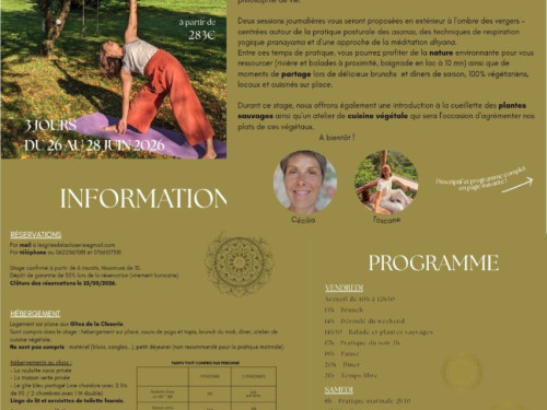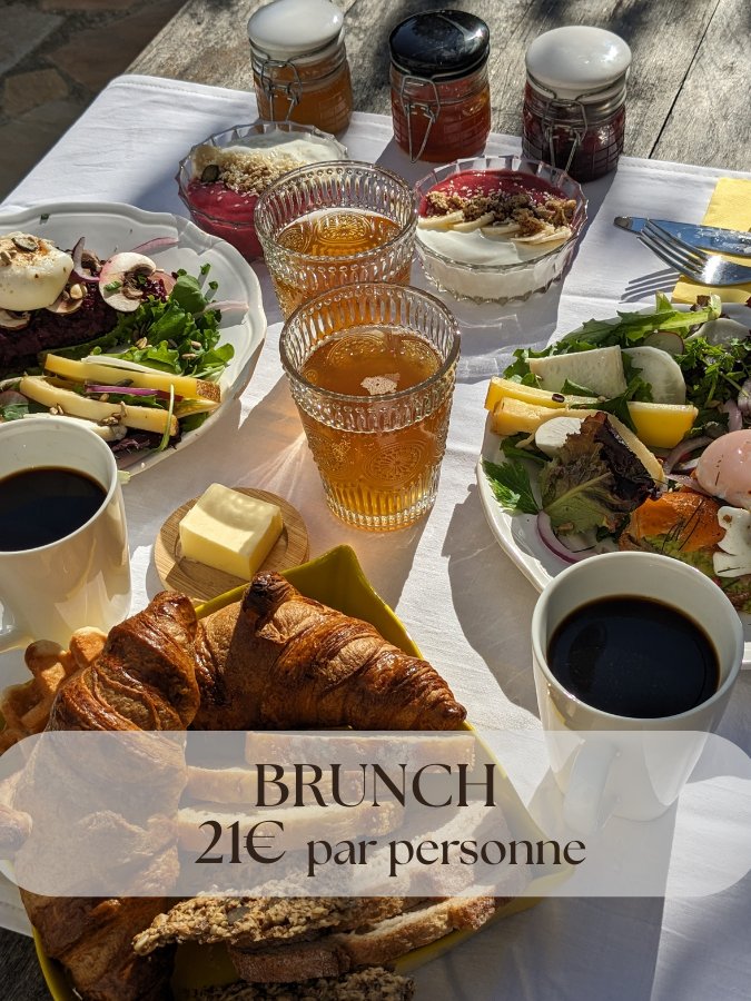 17 € /personne Assiette Complète (essentiellement végétale, agrémentée de plantes sauvages comestibles).