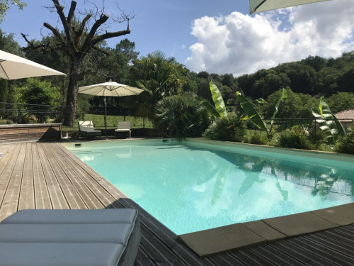La piscine extérieure est située dans 2,5 hectares de jardin et de bois, avec vue en direct sur la nature - la situation au calme et éloignée de la route vous assurera repos et tranquillité.