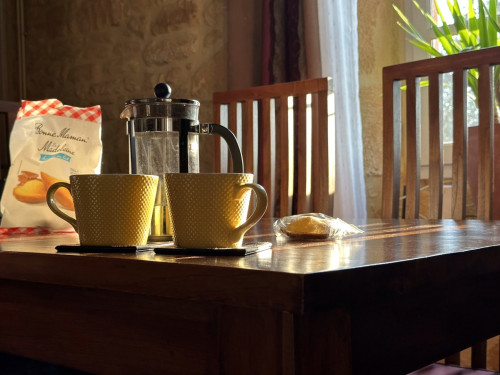 Cadeau pendant votre séjour : Vin de la région, biscuits et café.
