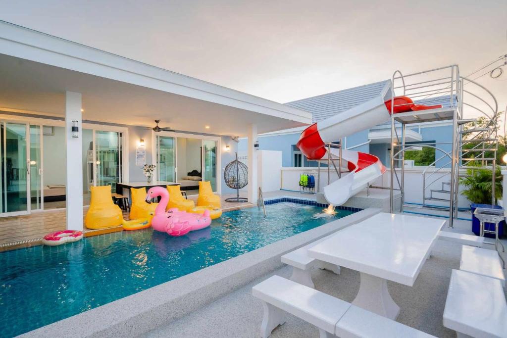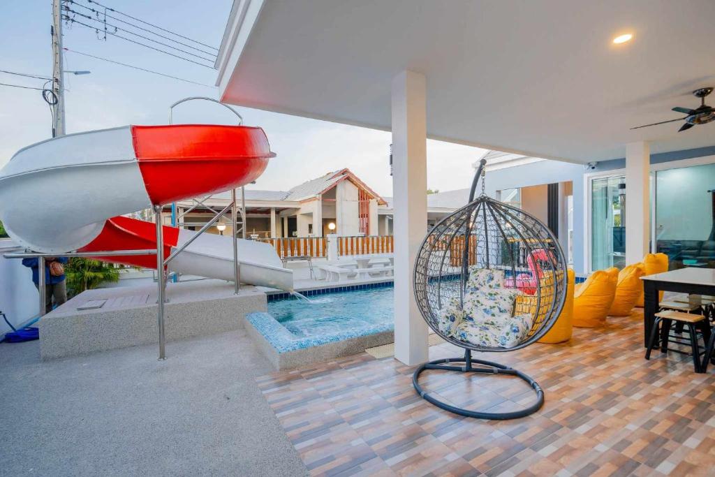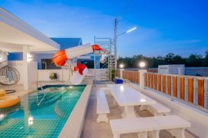 Set in Cha Am, 4.7 km from Cha-am Railway Station and 4.9 km from Cha-am Forest Park, พลอยพูลวิลล่า ชะอำ 2 Poolvilla Cha-am 2 offers a garden and air conditioning. This property offers access to a patio, a pool table, free private parking and free WiFi. The villa features an outdoor swimming pool with a water slide, as well as a hot tub and a shared kitchen.
