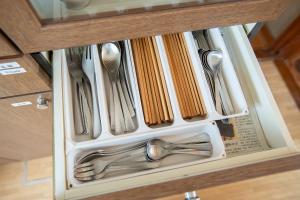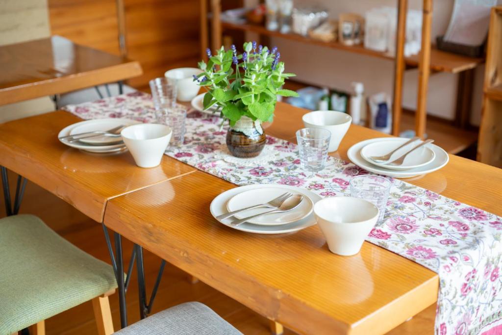 In the kitchen, guests will find a stovetop, a refrigerator, kitchenware and an oven. The quadruple room provides a washing machine, tatami, a terrace with garden views as well as a shared bathroom featuring a bath. The unit offers 4 futons.