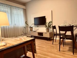 Cet appartement avec climatisation se compose de 1 chambre, d'un salon, d'une cuisine entièrement équipée avec un réfrigérateur et une machine à café, ainsi que de 1 salle de bains avec un bidet et un sèche-cheveux. Des serviettes et du linge de lit sont à disposition.