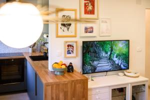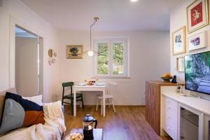 The 1-bedroom apartment is equipped with a living room with a flat-screen TV with streaming services, a fully equipped kitchen with a dishwasher and an oven, and 1 bathroom with a hair dryer. Towels and bed linen are provided in the apartment. The property offers garden views.