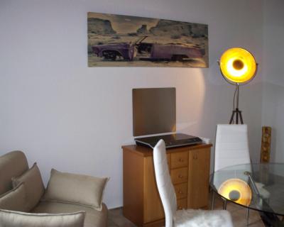 Die Unterkunft 2 Raum Wohnung, von der aus Merkur Spiel-Arena in 18 km erreichbar ist, bietet Übernachtungsmöglichkeiten mit Parkettböden, einem Garten, einer Terrasse und einer Bar. Kostenloses WLAN ist verfügbar.