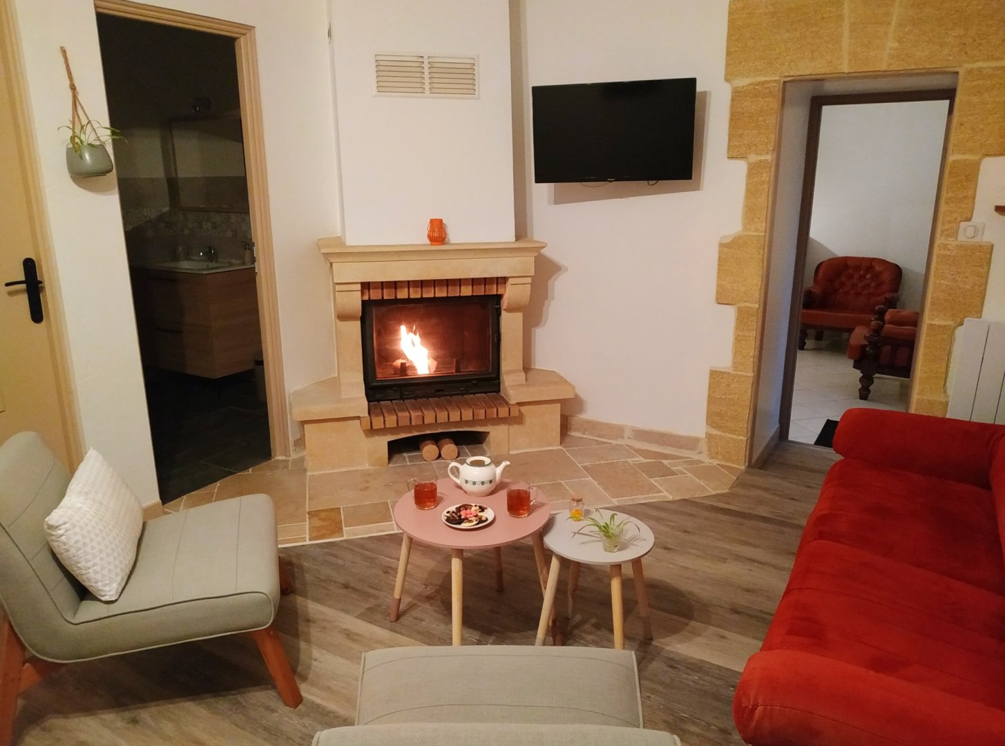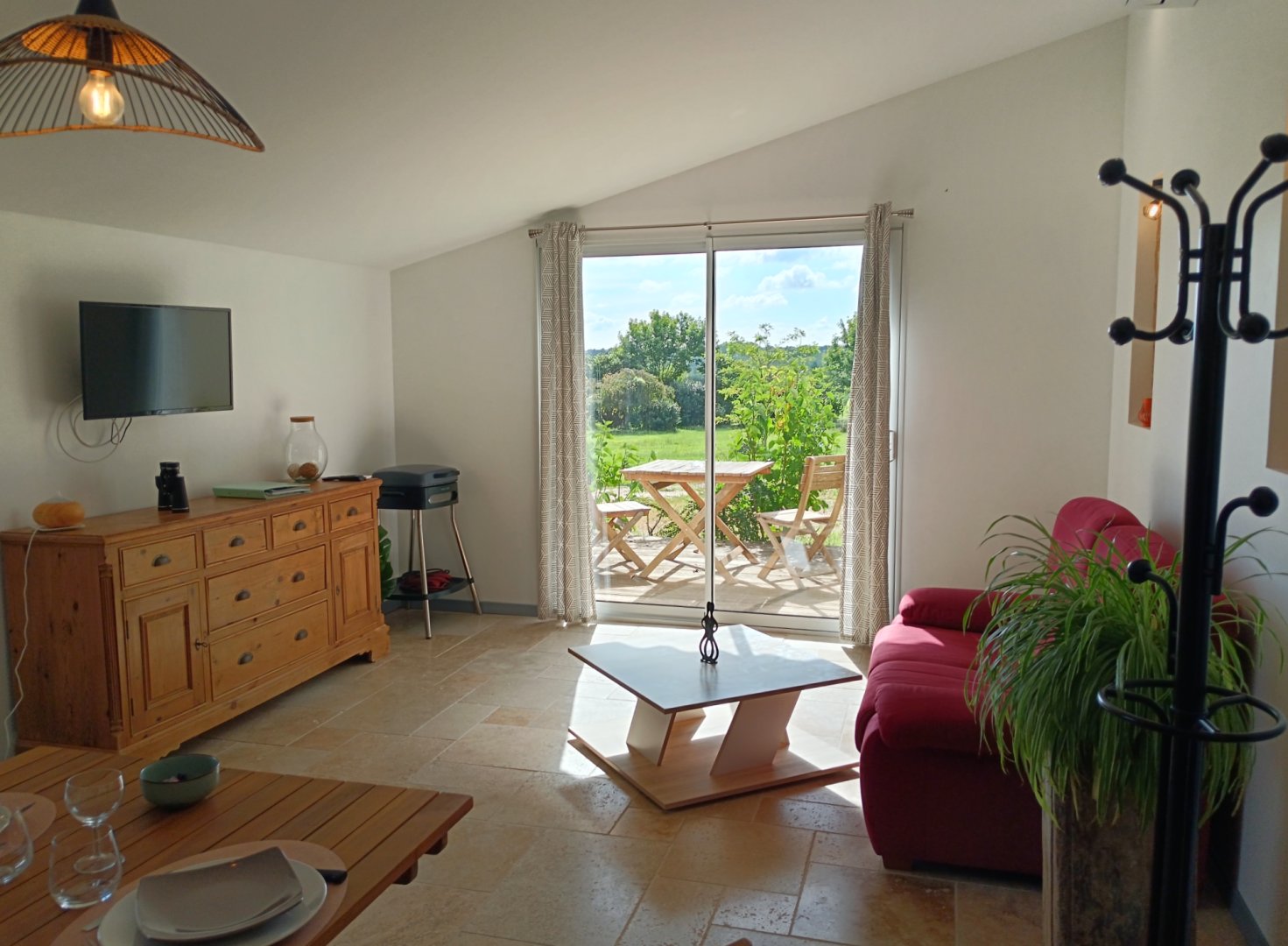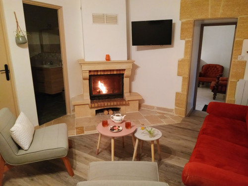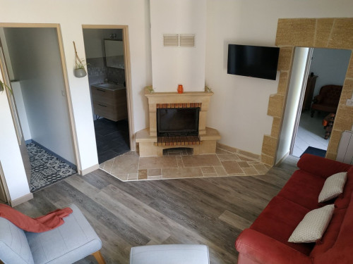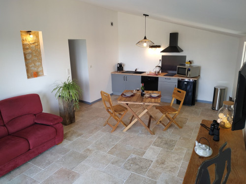- l'entrée se fait par la pièce à vivre : 1 cuisine avec salle à manger pour 10 personnes et salon (1 TV)