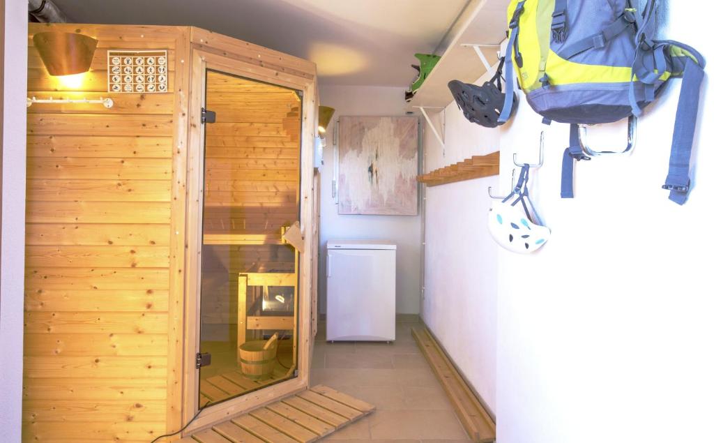 L’établissement 5 Sterne FeWo mit Garten und Bergblick in Chiemsee-Nähe dispose d’un sauna.