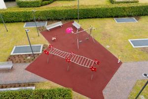 Outdoor play equipment is also available at the apartment, while guests can also relax in the garden.