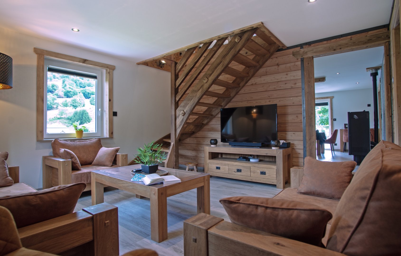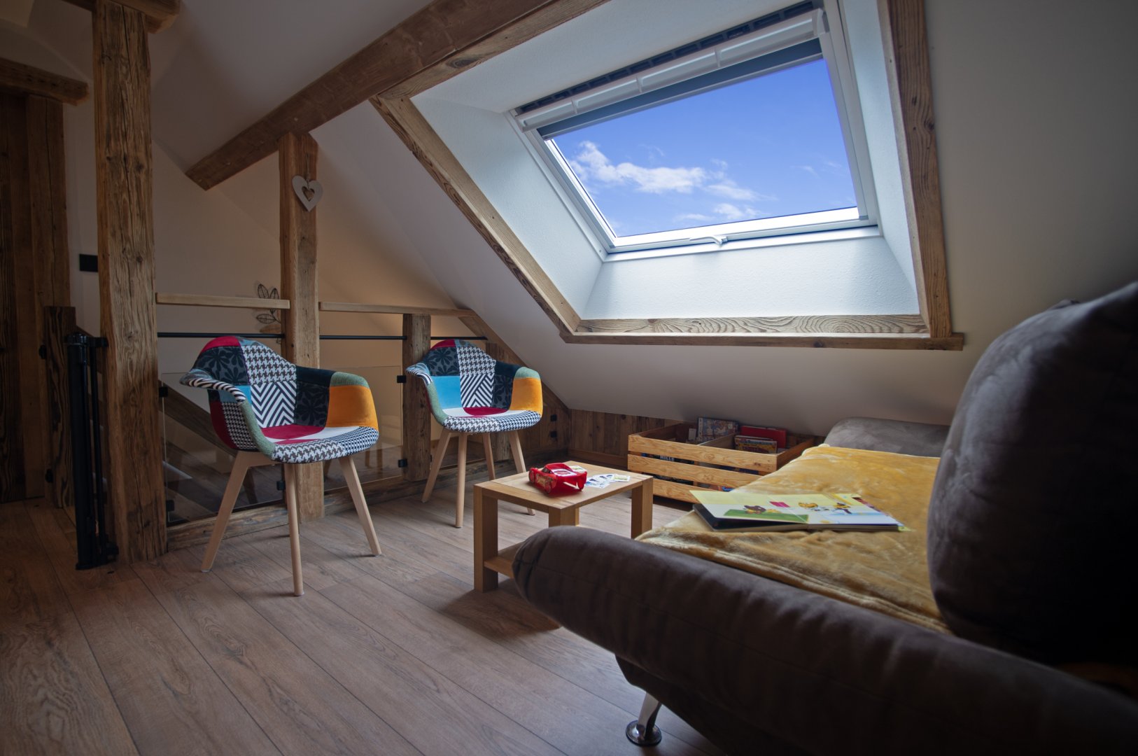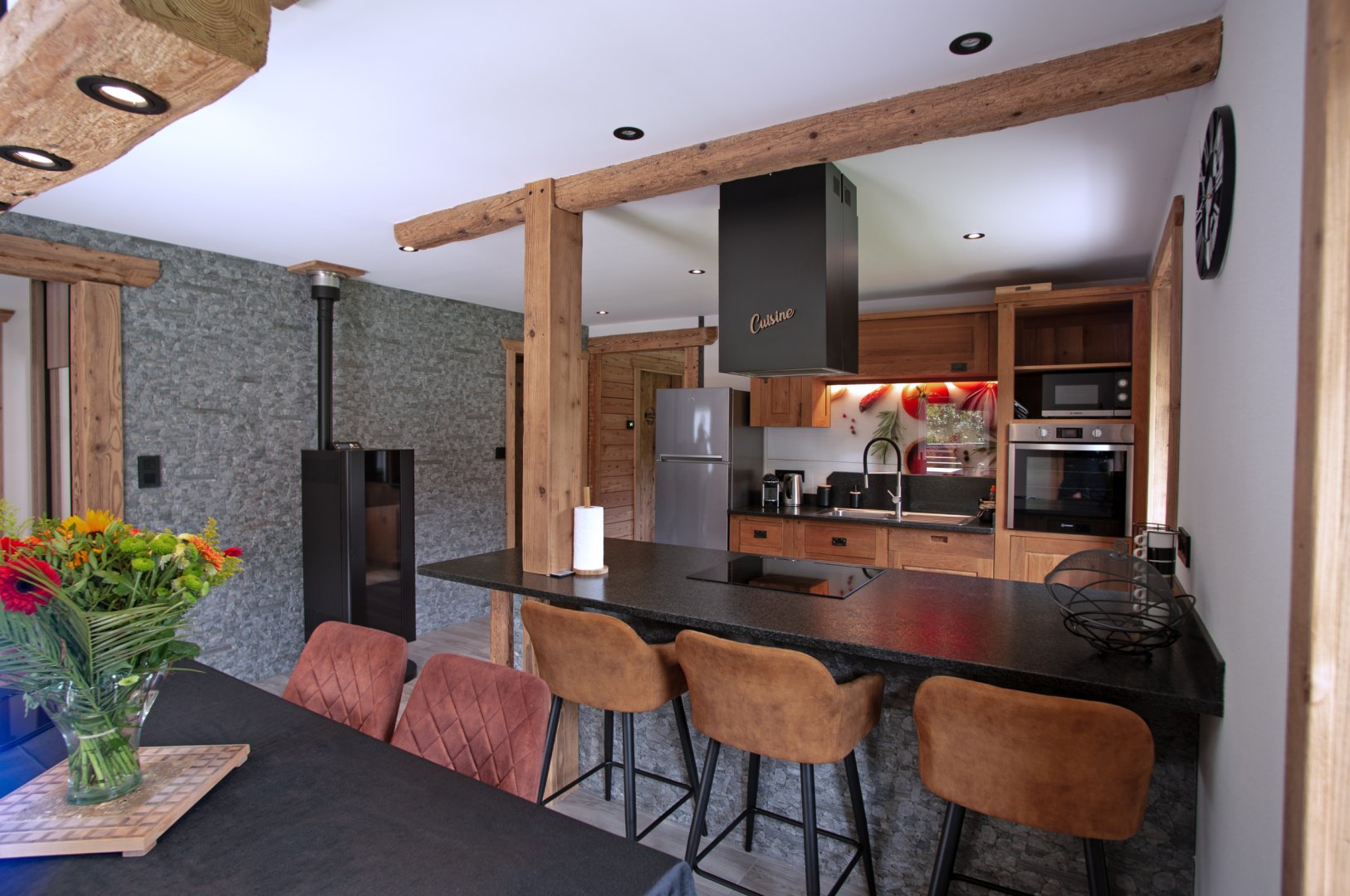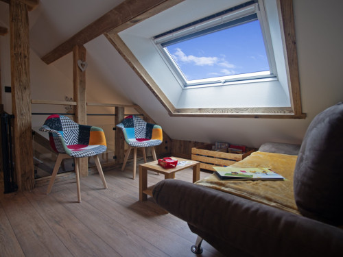 Lumineux et spacieux, il révèle tout le charme du vieux bois et de la pierre.