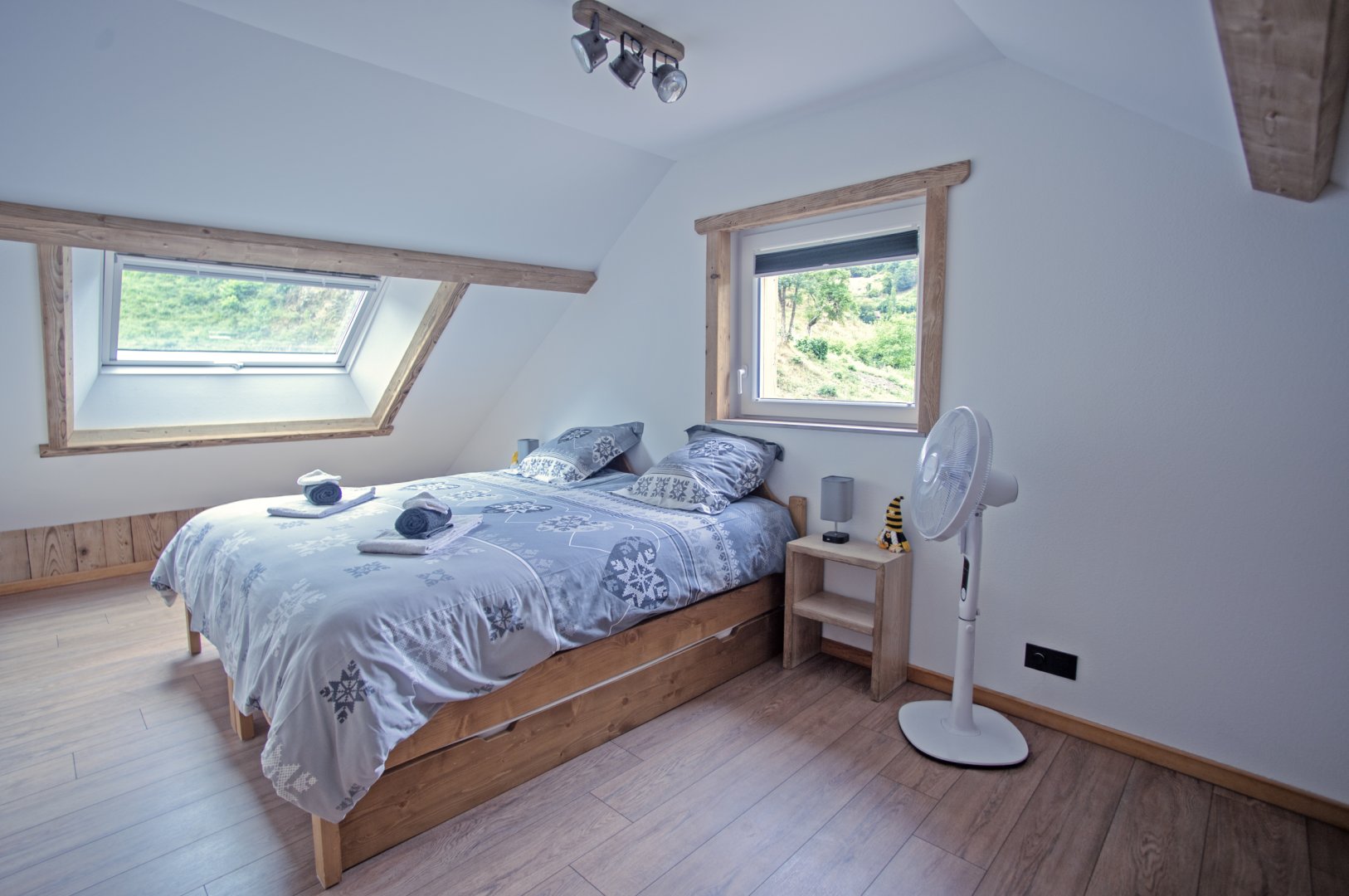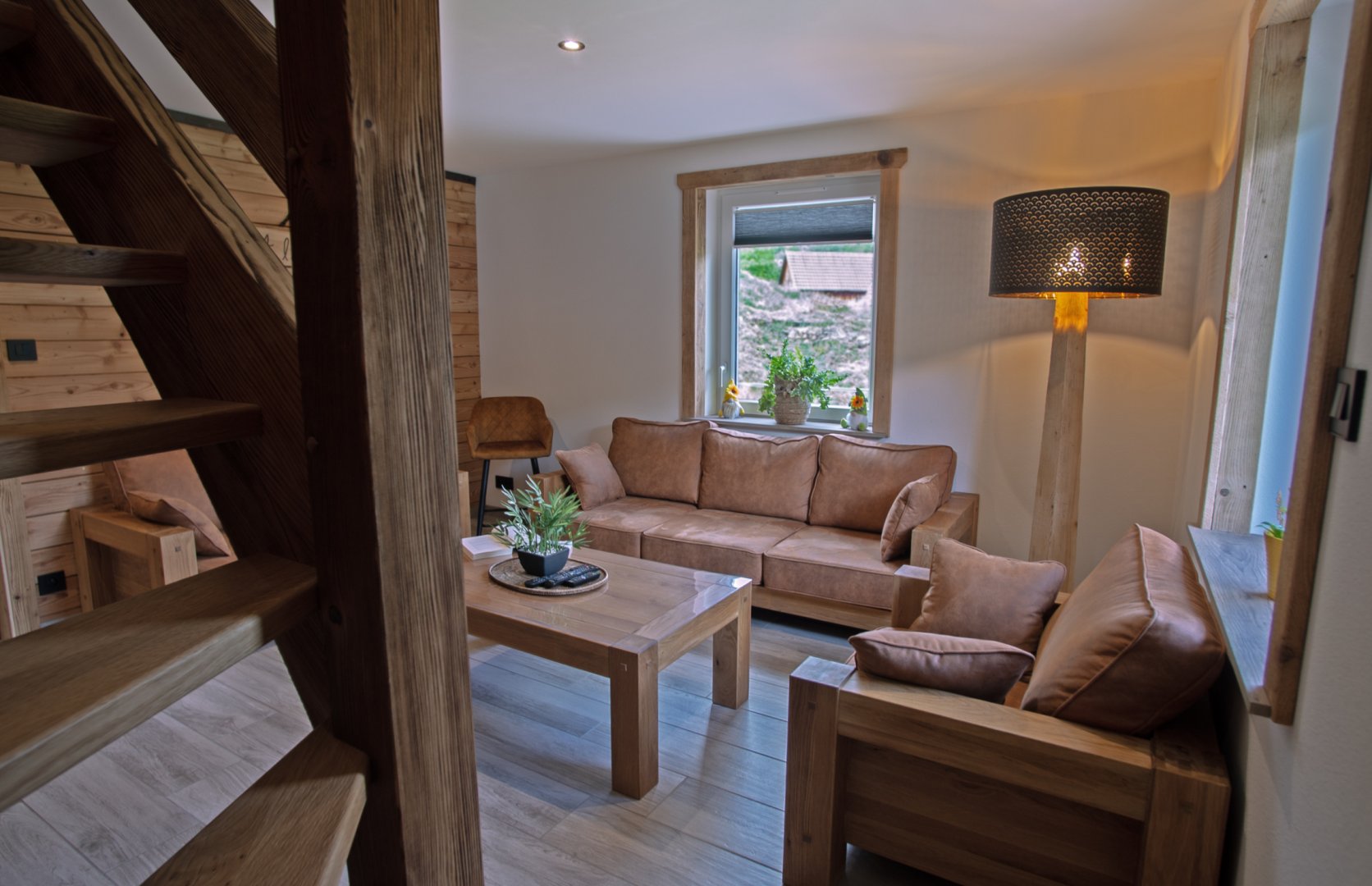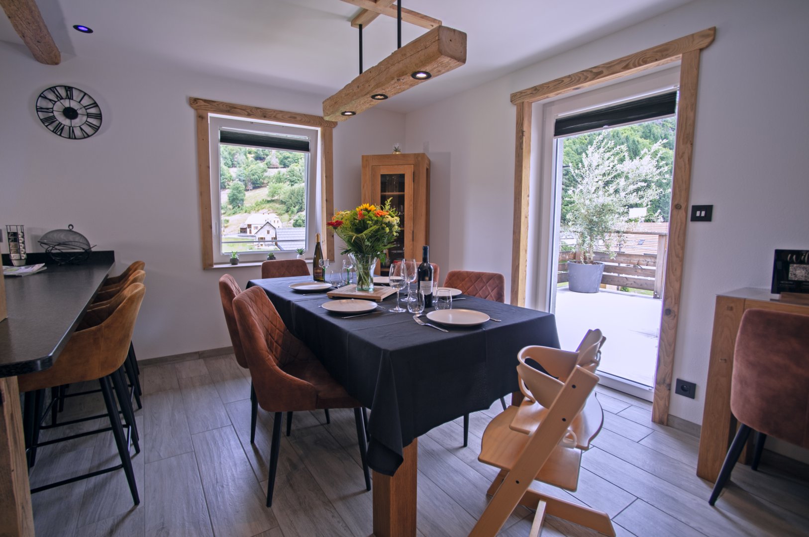 Lumineux et spacieux, il révèle tout le charme du vieux bois et de la pierre.