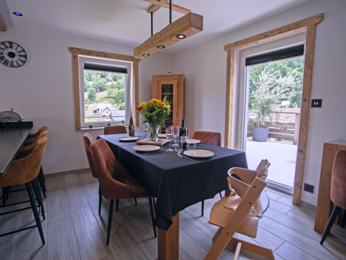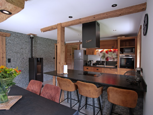 La cuisine, ouverte sur le séjour, est équipée de tout le nécessaire pour des vacances placées sous le signe du confort et de la convivialité.
