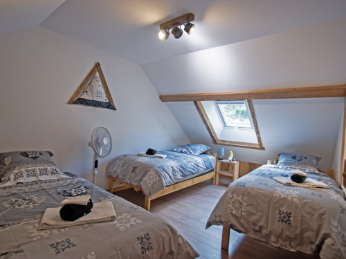 Avec une capacité d'accueil de 6 à 8 personnes, ce havre de paix comprend trois chambres (1 chambre avec lit double de 160x200 et 2 chambres avec 2 lits juxtaposables de 90x200 et 1 lit gigogne de 85x190) et une charmante mezzanine.