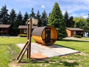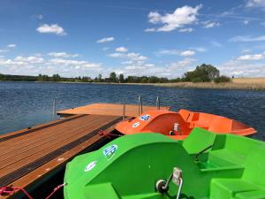 Situated in Stęszew, 20 km from Poznan Stadium, AB Domki całoroczne nad jeziorem features accommodation with a garden, private parking, a private beach area and a terrace. 21 km from Poznan International Fair and 21 km from Poznań Palm House, the property offers a bar and water sports facilities. The resort provides lake views and a children's playground.
