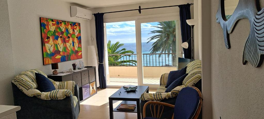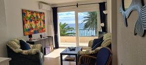 The apartment with a balcony and sea views features 1 bedroom, a living room, a flat-screen TV, an equipped kitchen with a microwave and a toaster, and 1 bathroom with a bidet. Towels and bed linen are provided in the apartment. The property has an outdoor dining area.