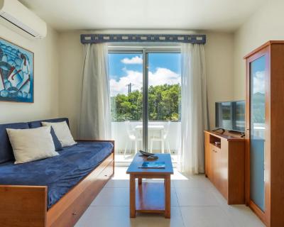 Les appartements climatisés possèdent une télévision et un balcon. La kitchenette entièrement équipée comporte un four micro-ondes et un réfrigérateur. Leur salle de bains privative est pourvue d'une baignoire, d'un sèche-cheveux et d'articles de toilette gratuits. Vous profiterez d'une vue sur la montagne et la piscine.
