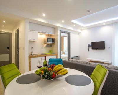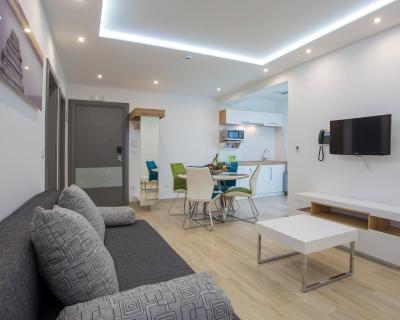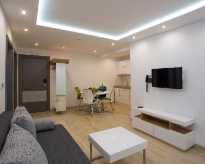 All apartments and studios are fitted with air conditioning ans a seating area with a flat-screen TV. A kitchen is equipped with microwave, stove and dining area. There is also a private bathroom with a shower and free toiletries and towels. All units include furnished balconies while some offer views of the sea.