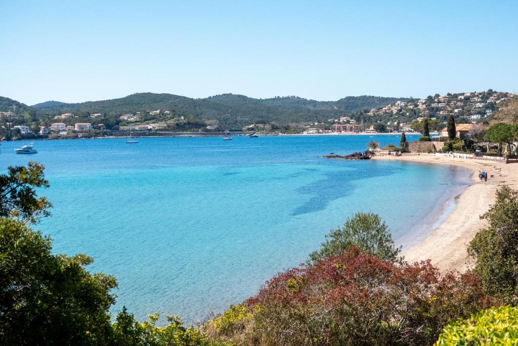 Agay Cap Esterel Village Allée Fleurs - F2 Clim vue golf et mer - Grande terrasse plein sud is a beachfront property located in Agay - Saint Raphael, a few steps from Pourrousset and 9.1 km from Saint-Raphaël Valescure Train Station. Spa facilities and a bicycle rental service are available for guests. There is an outdoor pool and guests can make use of free WiFi, free private parking and an electric vehicle charging station.