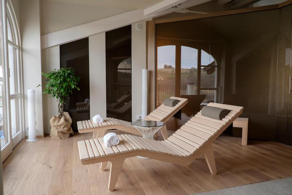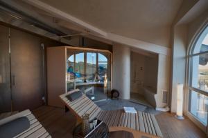 The wellness centre includes a Turkish bath, sauna, hot tub, massages and beauty treatments.