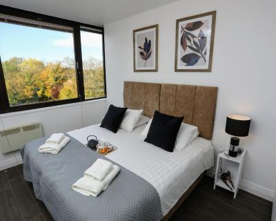 Offering city views, Aisiki Living at Upton Road, Multiple 1, 2, or 3-Bedroom Apartments, King or Twin Beds with Free Wi-Fi & Parking Space is an accommodation situated in Watford, 1.6 km from Watford Junction and 11 km from Harrow-on-the-Hill. This apartment features free private parking, a lift and free WiFi. This 5-star apartment offers private entrance.