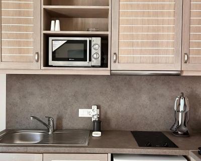 L’établissement propose des hébergements avec vue sur la ville, une terrasse, un coin salon et une télévision à écran plat par satellite. Vous bénéficierez d’une kitchenette entièrement équipée avec un réfrigérateur et un micro-ondes, ainsi que d'une salle de bains privative avec une douche et des articles de toilette gratuits. Une plaque de cuisson et un grille-pain sont également à disposition, de même qu’une machine à café et une bouilloire.