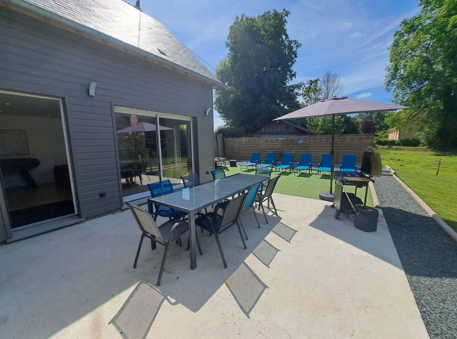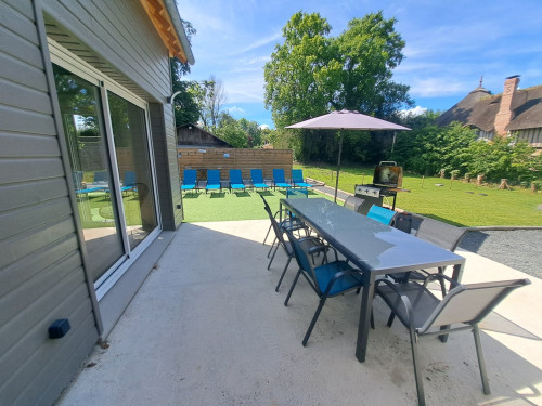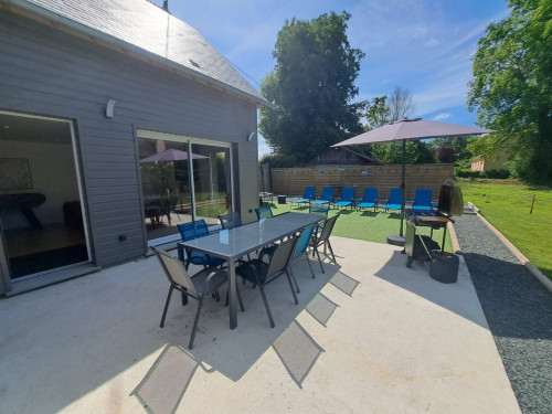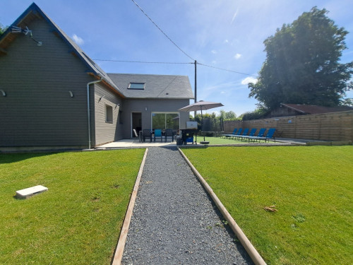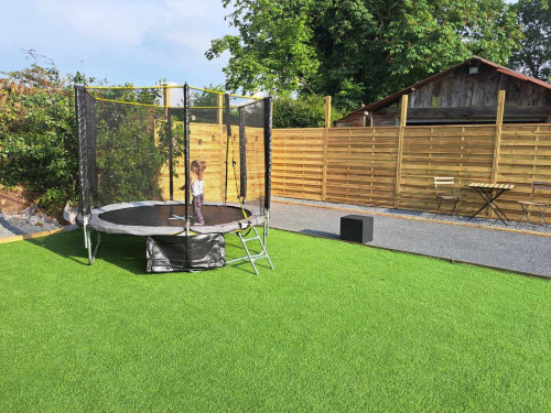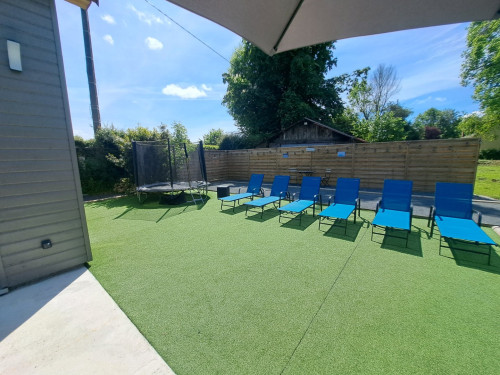 A l'extérieur, mise a disposition d'un salon de jardin, de transats, d'un terrain de pétanques (boules sur places) et d'un trampoline pour enfants.